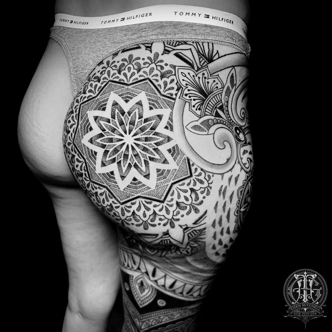 The latest trend in the world of tattoos is geometric butt tattoos. It covers your entire butt which looks quite beautiful as it covers the whole area and defines the shape of your butt.